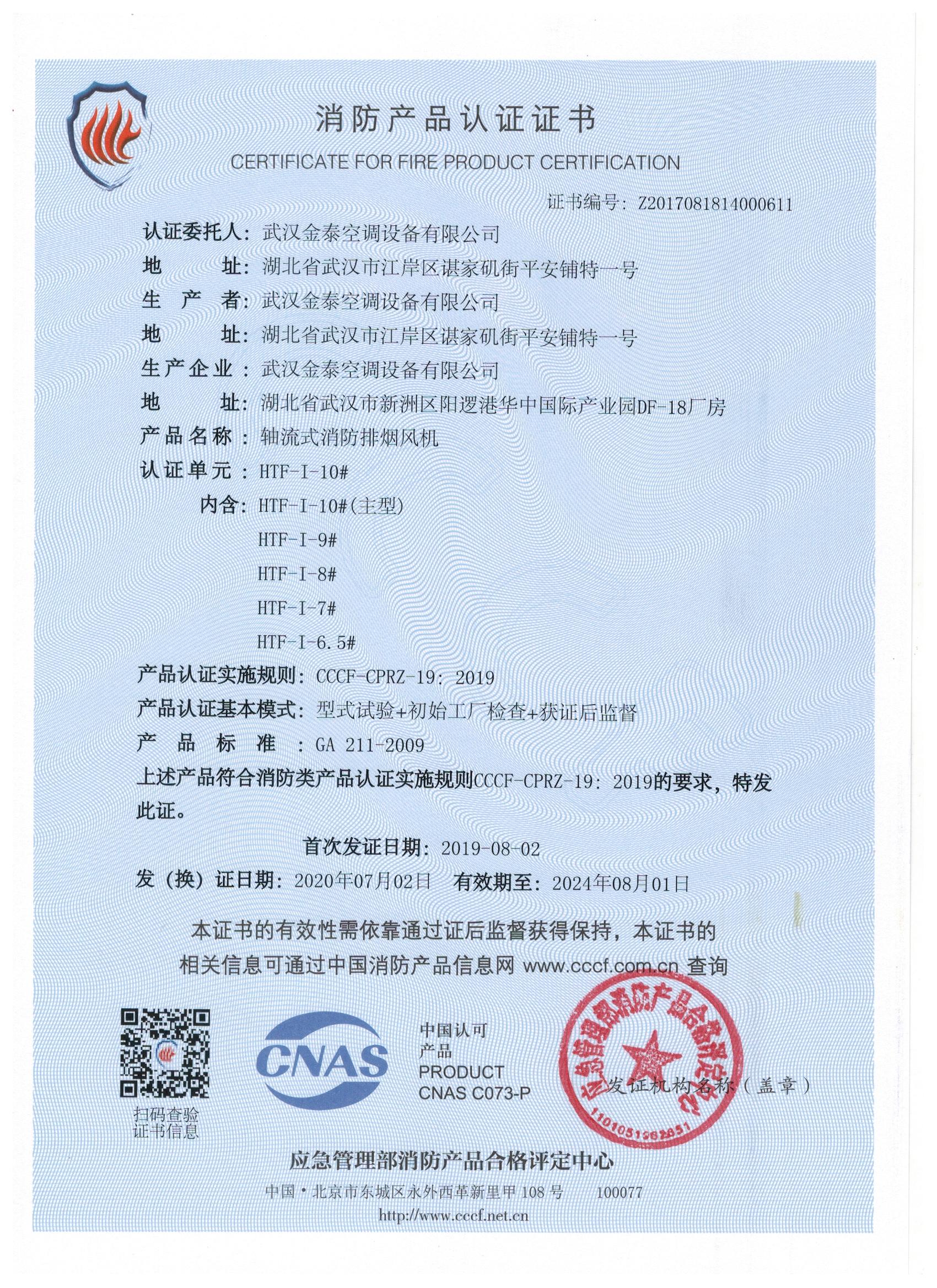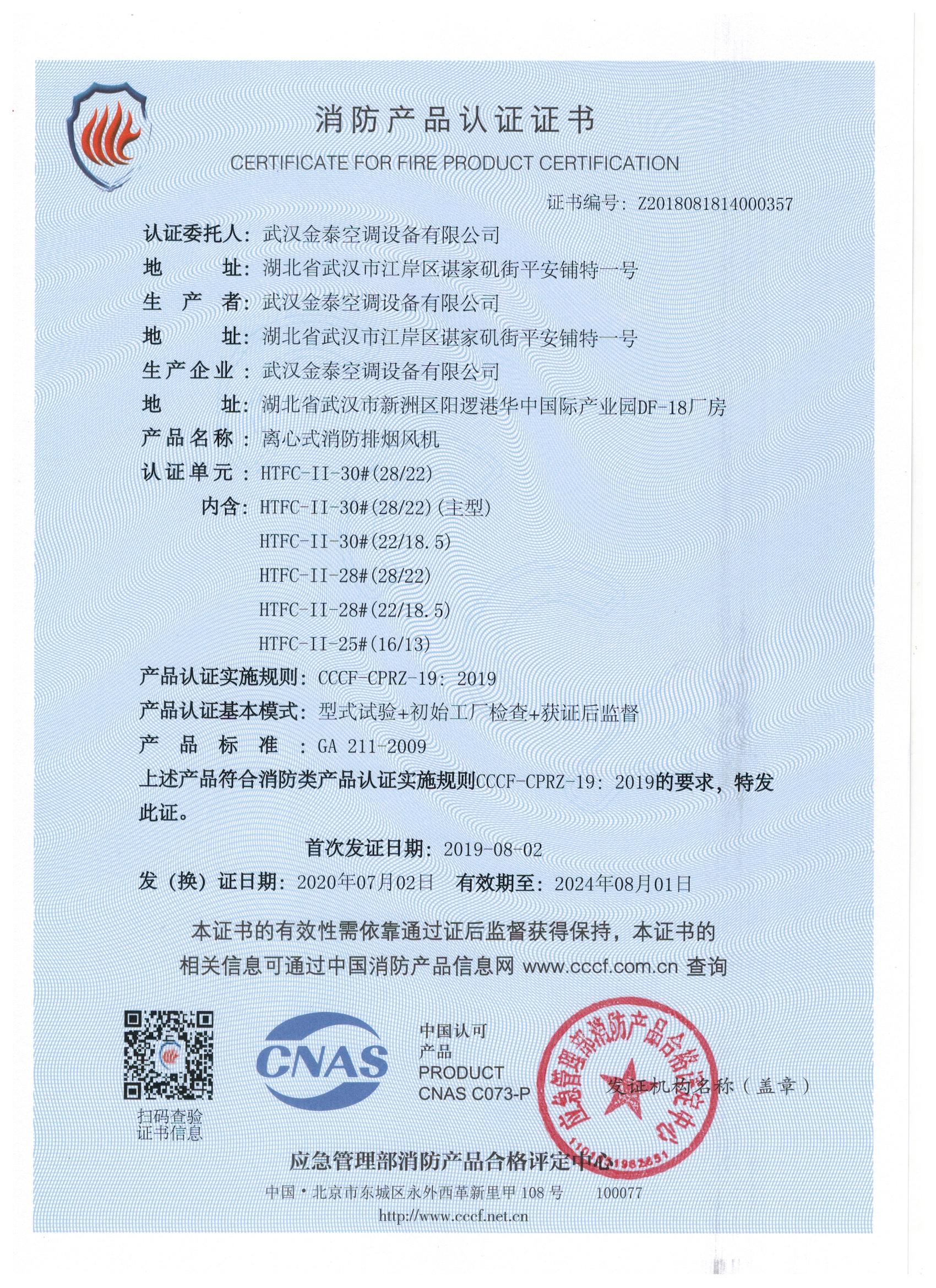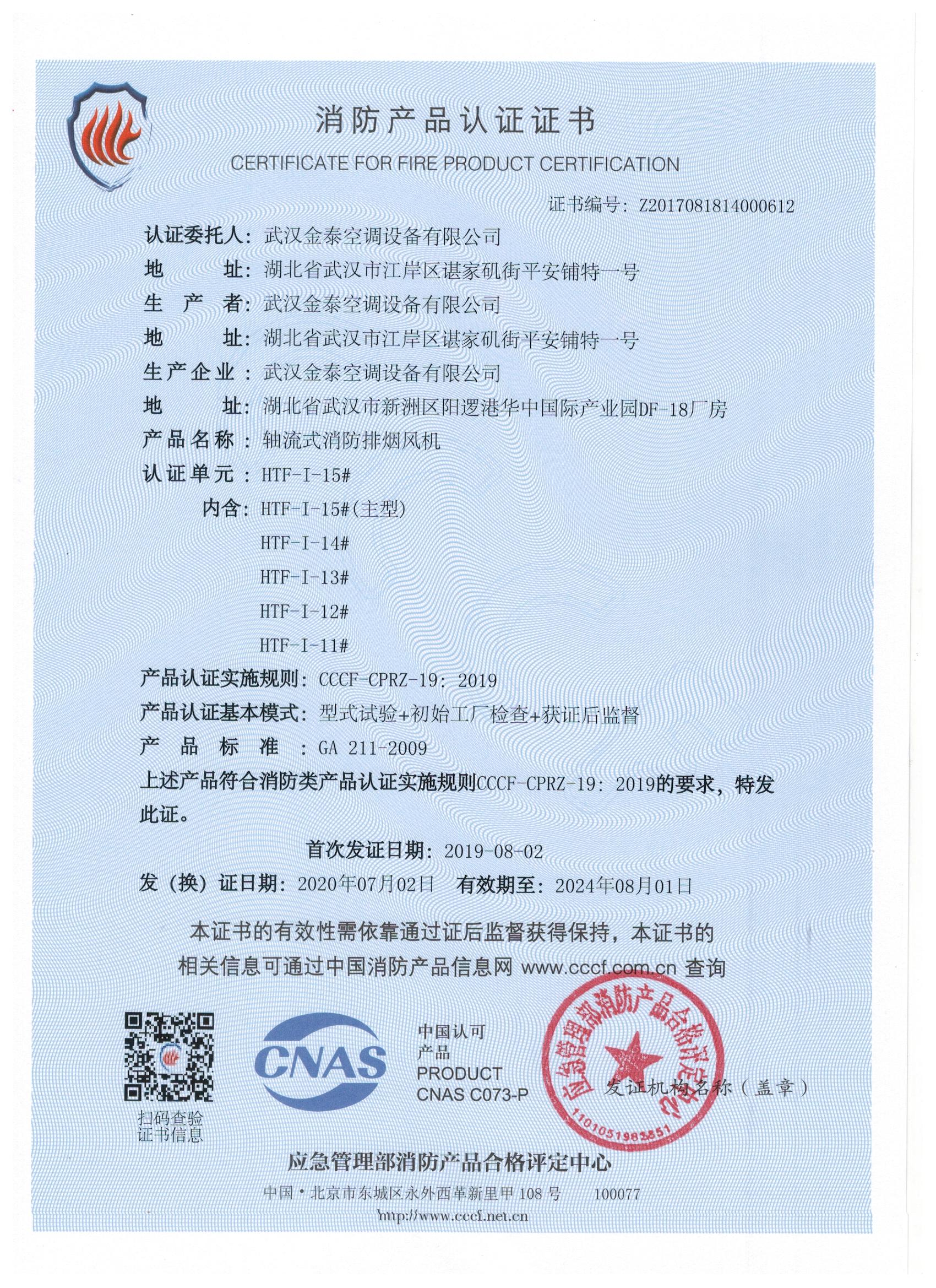 武漢金泰空調(diào)設(shè)備有限公司 是國內(nèi)長期專注于民用風(fēng)機(jī)、工業(yè)風(fēng)機(jī)領(lǐng)域的標(biāo)桿企業(yè):專業(yè)生產(chǎn)消防排煙風(fēng)機(jī)系列、排煙防火閥系列、一般通風(fēng)機(jī)系列(軸流式、離心式、屋頂式、壁式、隧道式、射流式)、風(fēng)口、風(fēng)管等消防及通風(fēng)設(shè)備。產(chǎn)品經(jīng)公安部消防產(chǎn)品合格評定中心評定符合消防產(chǎn)品CCC標(biāo)準(zhǔn);經(jīng)中國合格評定國家認(rèn)可委員會(huì)認(rèn)證的檢驗(yàn)所檢驗(yàn)合格;經(jīng)國家防火建材質(zhì)量監(jiān)督檢驗(yàn)中心(四川中心)火燒實(shí)驗(yàn),耐火性能達(dá)標(biāo)。