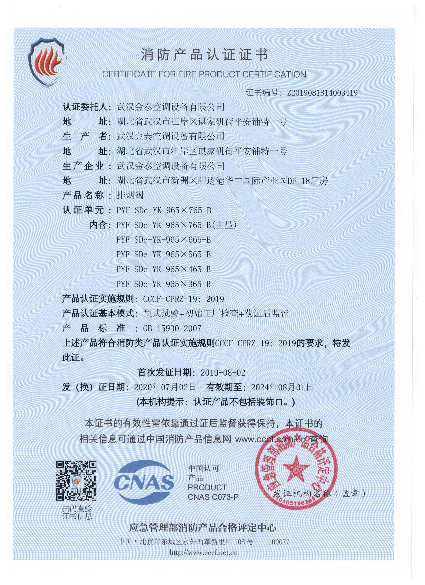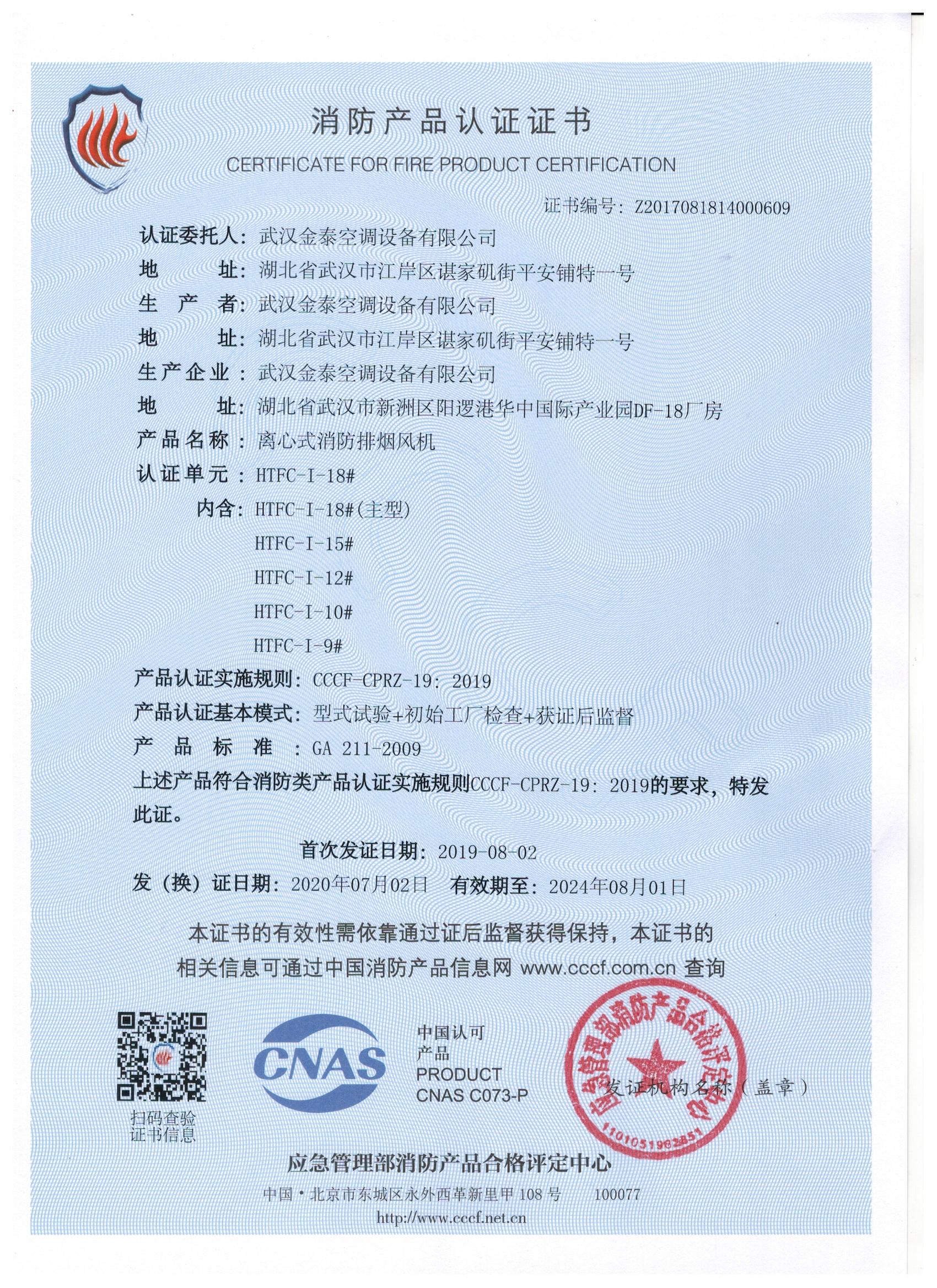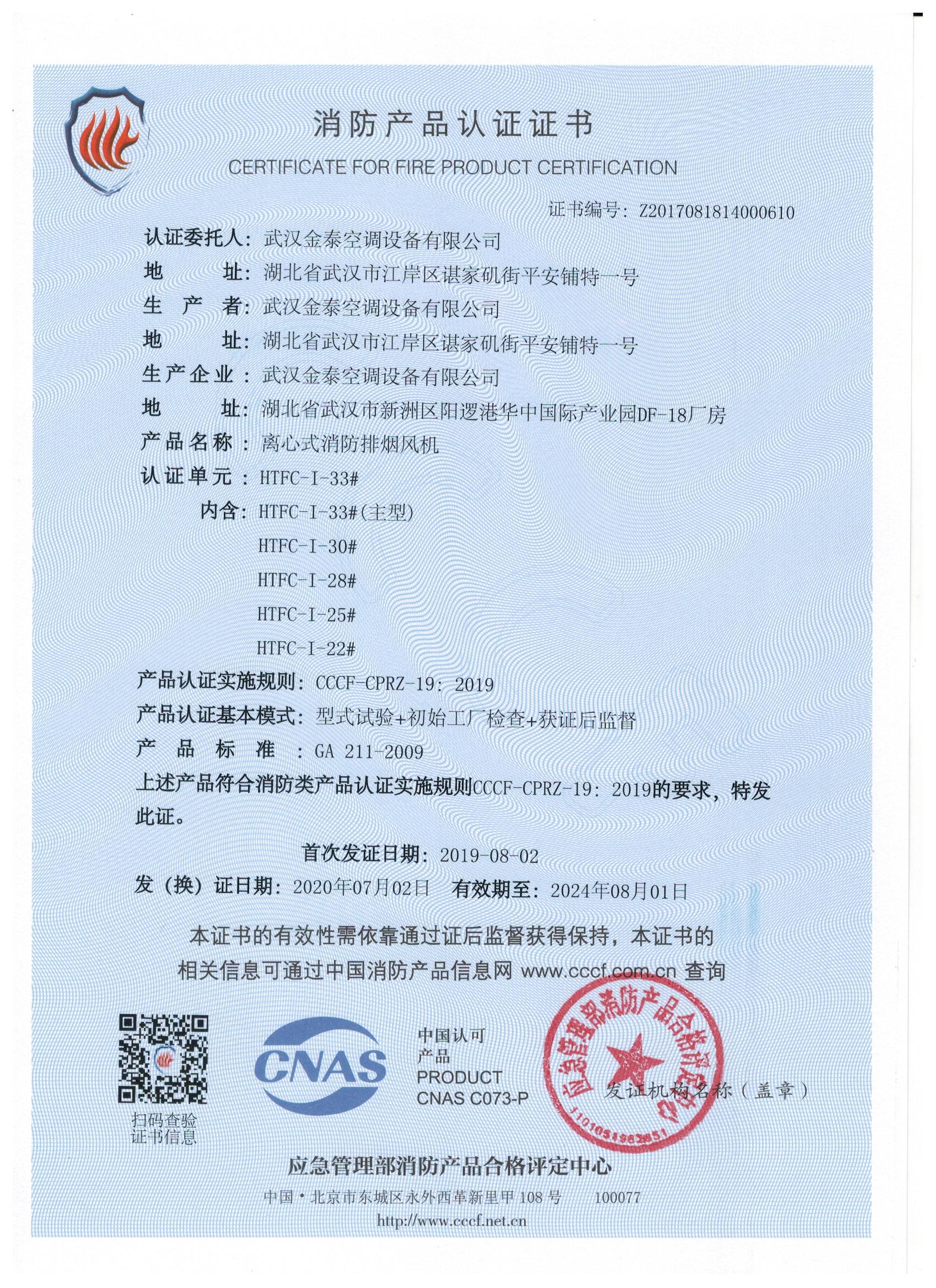 武漢金泰空調(diào)設(shè)備有限公司 是國內(nèi)長期專注于民用風(fēng)機(jī)、工業(yè)風(fēng)機(jī)領(lǐng)域的標(biāo)桿企業(yè):專業(yè)生產(chǎn)消防排煙風(fēng)機(jī)系列、排煙防火閥系列、一般通風(fēng)機(jī)系列(軸流式、離心式、屋頂式、壁式、隧道式、射流式)、風(fēng)口、風(fēng)管等消防及通風(fēng)設(shè)備。產(chǎn)品經(jīng)公安部消防產(chǎn)品合格評定中心評定符合消防產(chǎn)品CCC標(biāo)準(zhǔn);經(jīng)中國合格評定國家認(rèn)可委員會(huì)認(rèn)證的檢驗(yàn)所檢驗(yàn)合格;經(jīng)國家防火建材質(zhì)量監(jiān)督檢驗(yàn)中心(四川中心)火燒實(shí)驗(yàn),耐火性能達(dá)標(biāo)。